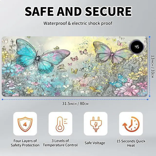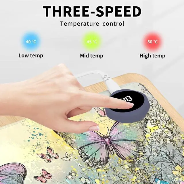 DayMulti-Functional: This warmer mouse pad also can be used as a gaming mouse mat, table warm pad, foot warmer pad, pet warmer pad. It will give you many surprises about its usage. It can keep you warmer through the cold winter. Keep warm anytime and anywhereThe heated desk mat has three temperature settings(40C, 45C, or 50C) and digital display, allowing you to customize the heat level according to your preference. The double-layer heating sheet of mouse pad enables rapid heating, just 15 seconds, you can feel significant heat. Uniform and stable heating can make your body warm anytime, anywhere in the winter.