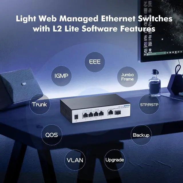*NOTE: When modify in the web, please save configuration and reboot will not lost. * ^^ 60Gbps BandwidthSwitching capacity is 60Gbps, 2x10G uplink ports for high-speed network connectivity provide a cost-effective solution for adding 10G link capacity. ^^ High-speed 10GBASE-T and 10G SFP+Supports 1G/10G link speeds for high-speed network uplink and downlink NAS/access server connectivity, providing a cost-effective solution for adding 10G link capacity to SMB networks. ^^ Versatile & ReliableIdeal for 4K/8K streaming, gaming PCs, NAS, WiFi 6 APs & servers. Durable metal case, support desktop/wall mounting, fanless design (silent & low-power), with clear LED indicators for easy monitoring.