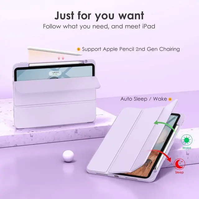 ^^ [ Multiple Function]: This iPad case has Pencil Holder to support 2nd Gen Pencil wireless charging, Camera Protection cover, built-in magnets design that supports Auto Wake/Sleep, Tri-fold front cover that gives you 2 different view angles. ^^ [ Lifetime