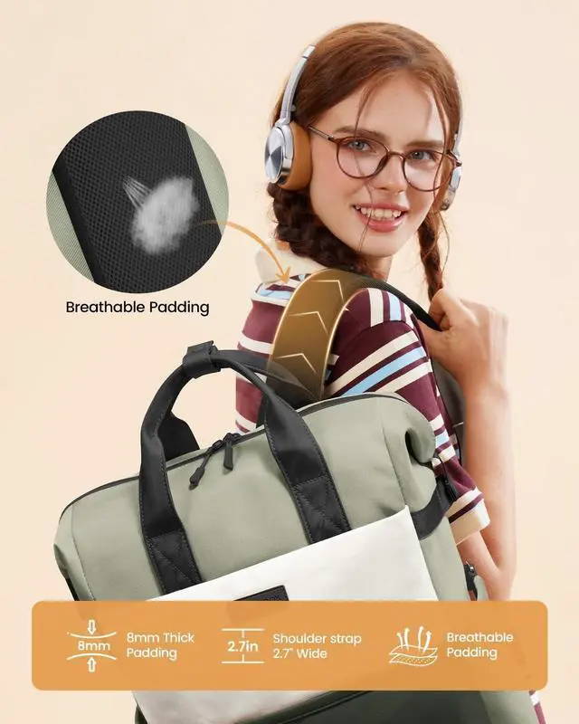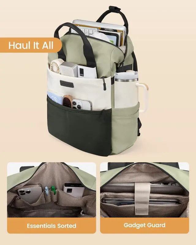 Wide Opening & Organized StorageWide opening for easy access. 12 pocketsincluding sleeves for a 15.6 -inch laptop, iPad, and 40oz bottlekeep items organized and within reach ^^ Large CapacitySpacious 11.8" x 18" x 5.4" design fits a 15.6" laptop, iPad, books, phone, umbrella, water bottle, clothes, and moreperfect for daily use or travel ^^ Weather-Resistant DurabilityMade of high-density polyester with reinforced stitching on straps and handles, plus sturdy, smooth zippers. The water-resistant fabric keeps your belongings protected ^^ Ergonomic ComfortWide, ergonomic shoulder straps with breathable padding help distribute weight evenly and improve comfort ^^ Travel-Friendly DesignIncludes a luggage strap for attaching to suitcases and an anti-theft back pocket for valuables.