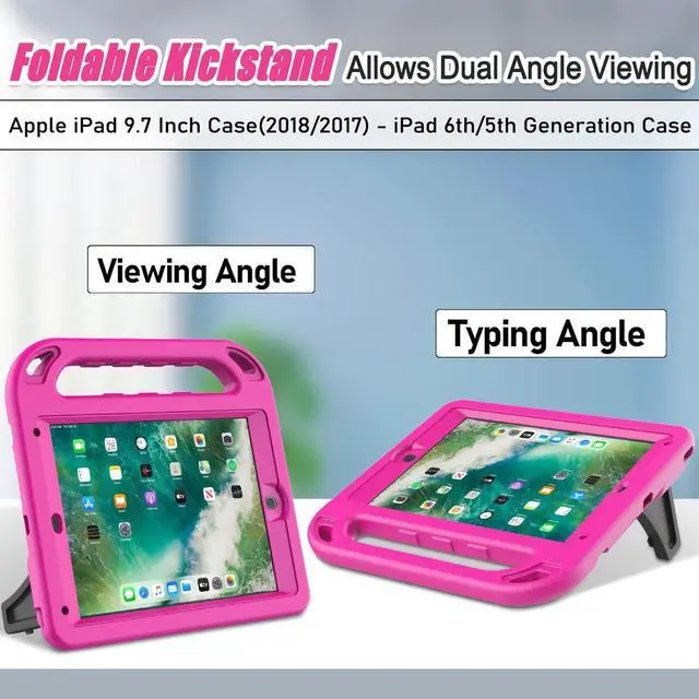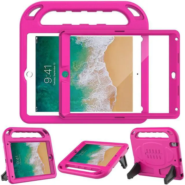 FIT MODEL - iPad 9.7 2018/2017 Case, fit to iPad 6th Generation 2018 Model A1893 A1954, iPad 5th Generation 2017 Model A1822 A1823, iPad Air 2 case Model A1566 A1567, iPad Air (1st generation) Model A1474 A1475 A1476 ^^ BUILT IN SCREEN PROTECTOR - 9.7 -inch iPad 6th/5th generation case with built-in screen protector, crystal-clear, full-body protection, keeps your iPad 9.7 from accidental bumps, drops and scratches efficiently ^^ SHOCK-PROOF DROP-PROTECTION - iPad 9.7 case for kids, made of shock-absorbing, impact-resistant EVA (Ethylene Vinyl Acetate) foam material, light weight yet durable, absolutely kid-friendly, provides decent protection for your iPad 6th/5th gen and iPad air 2 9.7 ^^ PRECISE CUTOUTS - iPad air 2 case for kids, has exact opening holes to all features (cameras, speakers, volume buttons, charging port, headphone jack, home button, sensors), great accessibility ^^ WONDERFUL CHOICE - iPad case 6th/5th generation comes in a series of bright and enjoyable colors, designed with convenient handle and kickstand, easy to grip/hold, ideal gift choice for family and friends