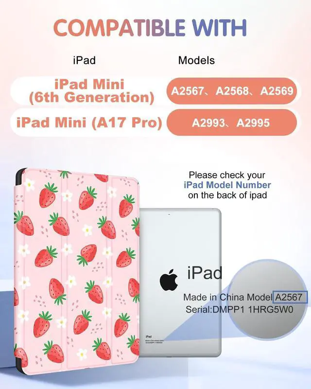 Compatible with: This case only compatible with iPad Mini 7 A17 Pro 2024 and Mini 6 8.3 inch 2021. ModelsA2567, A2568, A2569, A2567, A2568, A2569. Not applicable to other models. Please check your model before ordering.