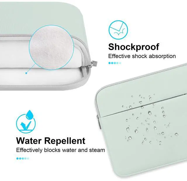 Laptop Protection: Adopt anti-scratch luxurious velour padding and shock-absorbent, high resilience buffer layers, offer a super barrier against accidental bumps and jolts, the laptop sleeve provide a ton of hydrostatic resistance to repel water from penetrating inside, shield your stuff from unexpected coffee spill, equipped with unique two-way zippers in smooth action, reinforced all stress points, ensuring that your valuable electronics is always in encompassing protection.