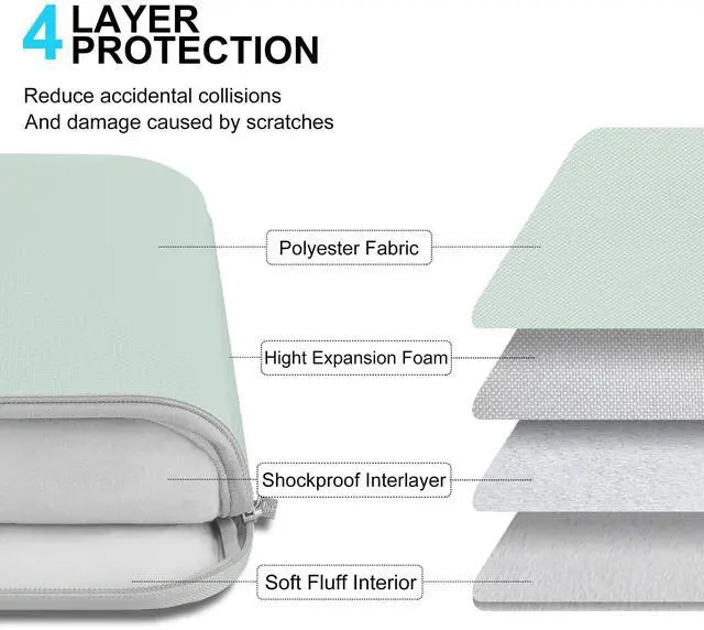 Lining: Featured by anti-static barrier with microscopic static shielding effectiveness, the laptop sleeve liner serves as an insulator that effectively avoids the adverse effects of static electricity, gives your laptop a rest-assured protection when you put or take out it. Plus the high-density velvet, the sleeve lining can against physical shocks and scratches, offer a fusion of soft comfort and down-to-earth security. ^^ Maximizing your
