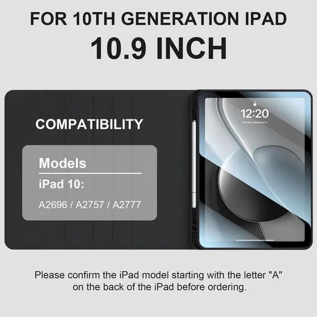 Compatible Models: Only compatible with the iPad (A16) released in 2025 (models: A3354/A3355/A3356) and the 10th generation 10.9 -inch iPad (models: A2696/A2757/A2777) released in