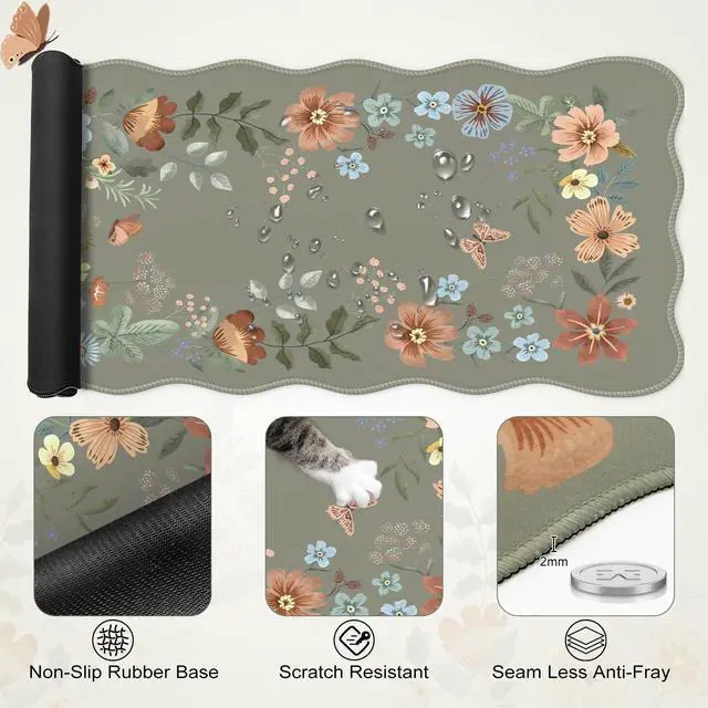 Built to last: Our desk mats feature reinforced stitched edges that prevent fraying and ensure durability. TipsDue to different lighting colors and shooting angles, it is normal for the color difference between the actual product and the demonstration photo. Since the desk mat cute is made of natural rubber and PU, it is normal for there to be a pungent smell when you receive the product. Please place the product in a ventilated place for 14 hours.