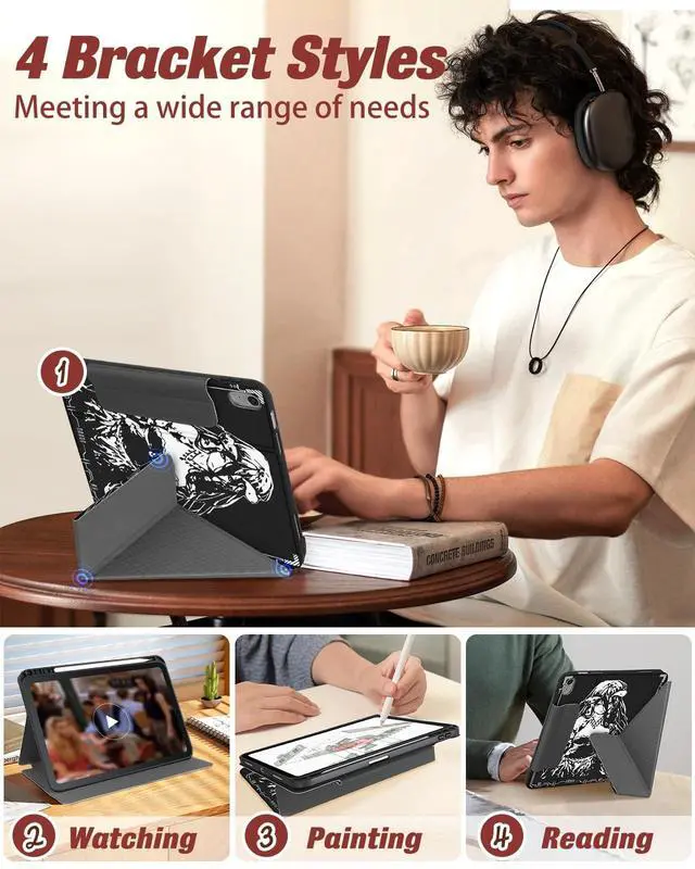 Our cases are compatible with iPad 10th Generation 2022 10.9 Inches(Model A2696/A2757/A2777), 11th (A16) Generation 2025 11 inch(Model A3354/A3355/A3356), make your iPad can stand at 4 different positions on the table. Provide you comfortable viewing and typing experiences ^^ Our cases for iPad 11/10 gen are made of premium durable PU leather and soft TPU, offer a good protection from drop and shock. It is stain resistant, and easy to clean. The high-definition printing process makes clear pattern and it not fade easily ^^ This for iPad 11th gen case, for iPad 10th gen case has built-in pencil holder, so you can place and remove your apple pencil easily.
