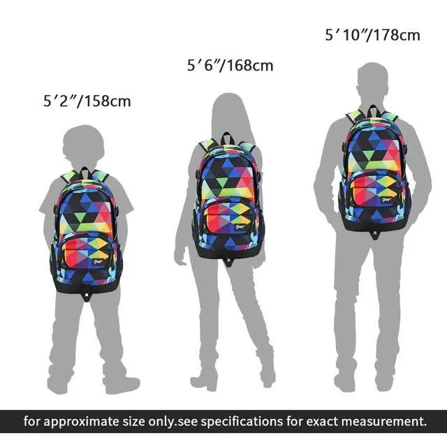-Applicable People: Men, Women; College/University Campus Students, High school, Middle school, Elementary, Primary school boys & girls; Parents, ect. )-Comfort with featuring ergonomic designed adjustable padded reinforced shoulder straps, makes the backpack all day use as a breeze. -High-quality, strong, long lasting nylon fabric builds our sturdy and solid backpack with great performance on water-resistance, anti- striking and anti-scratching. -Twin metal zippers with fabric flaps over to keep water out of the backpack and last much longer than plastic ones. Easy at opening and closing the backpack. Double stitching at stress points adds valuable security to seams, handles, and straps, enhancing the durability. And additional top handle provides extra help while lifting or moving the backpack.