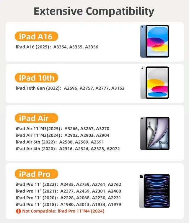 Compatibility: Designed for ipad A16 11th generation 11 inch 2025 (Model: A3354/A3355/A3356), iPad 10th generation 10.9 inch 2022 (Model: A2696/A2757/A2777)iPad Air 11 inch case with keyboard (M3/M2) 2025/2024 (Model: A3266/A3267/A3270/A2902/A2903/A2904), iPad Air keyboard case 5th / 4th generation 10.9 inch 2022/2020 (Model: A2588/A2589/A2591/A2324/A2072/A2316/A2325), iPad Pro 11 inch with keyboard 2022/2021/2020 (Model: A2759/A2761/A2435/A2762/A2377/A2459/A2301/A2460/A2228/A2068/A2230/A2231) ^^ Long Life