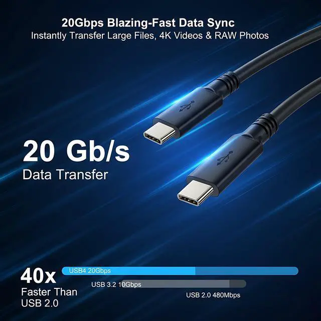 • 20Gbps Data Transfer: Equipped with USB 4.0 technology, this cable delivers blistering data transfer speeds up to 20Gbps.