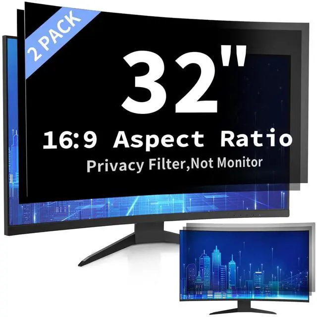 2 Pack 32 Privacy Screen This 32 curved monitor privacy screen fits for ultrawide 32'' curved monitors with a 16:9 aspect ratio.