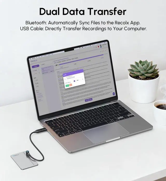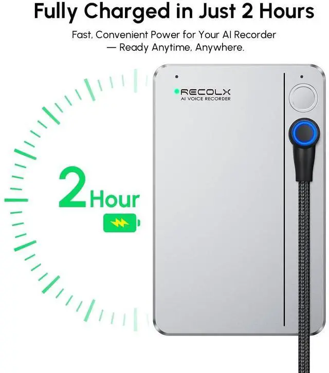 Keep your RECOLX AI Voice Recorder powered anytime with this Magnetic Charging Cable & USB-C OTG Adapter Kit. The strong magnetic connection prevents accidental disconnection, while the OTG adapter allows fast, easy file transfer to laptops or PCs. Compact, durable, and perfect as a backup or travel accessory.