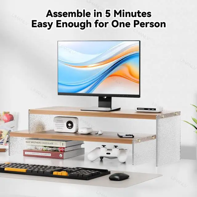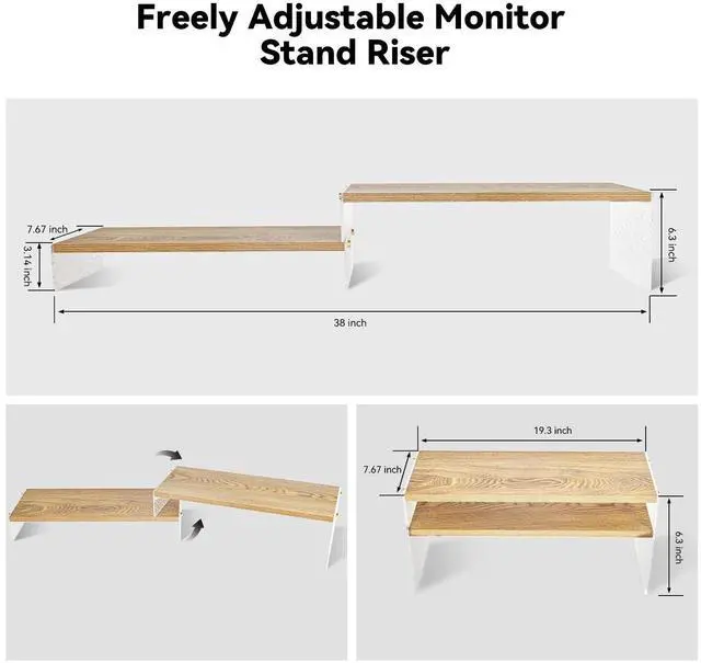 Monitor Stand Size: 6.29 19.29 7.67 in, Please align the smooth side toward the screw holes on the wooden board, with the textured end facing outward. Remember to remove the plastic film before use. You'll find a pleasant surprise when pairing it with lighting ^^