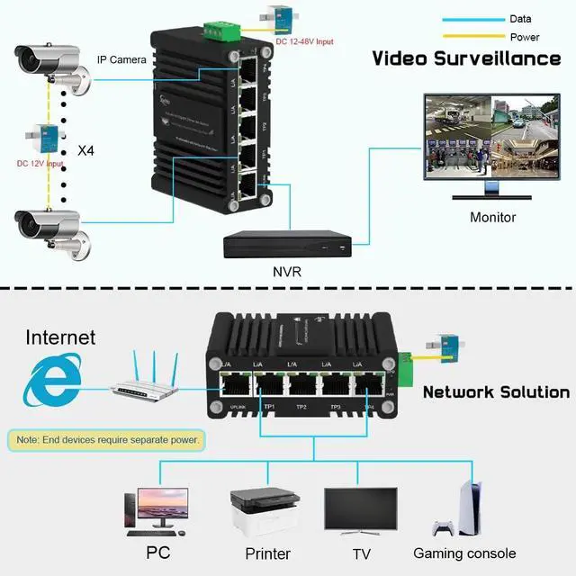 ^^ Industrial-Grade Reliability: DIN-rail mounted with rugged metal housing operates in extreme temperatures (-40C to 75C) with fanless, noise-free design.
