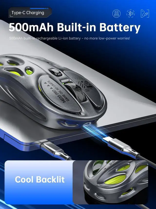 The Wireless Gaming Mouse is engineered for gamers who demand both performance and style. Its racing-inspired design not only looks sleek but also delivers ergonomic comfort, reducing wrist strain during long sessions. Featuring tri-mode connectivity ( 2.4GH z, Bluetooth, Wired), you can connect to multiple devices and switch seamlessly.