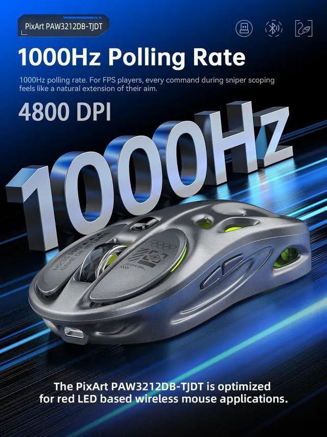 Note: when wired and wireless are simultaneously active, wired mode takes priority. Perfect for PC, laptop, and mobile gaming, whether at home, office, or on the go. [Equipped with the PixArt PAW3212DB-TJDT chip. ] The adjustable 4800 DPI and 1000Hz polling rate ensure split-second accuracy, whether youre casually gaming or competing at a professional level. Pro-grade 20 million-click switches provide crisp responsiveness that lasts, while the 65g ultra-lightweight build enhances speed and endurance across all gaming genres. Customization takes center stage with programmable buttons and RGB lighting, letting you create macros, remap keys, and sync your colors to match your setup. Whether youre building strategies in MMOs or fine-tuning precision in FPS, this gaming mouse adapts to your playstyle. Beyond gaming, its 500mAh rechargeable battery offers up to 14 days of standby power, with wired play available while charging. The hollowed-out design ensures airflow to keep your grip cool, while the supercar-style finish and automotive paint process deliver a refined look and smooth touch. From casual matches to competitive tournaments, or even hours of creative design and professional work across multiple workspaces, this ergonomic gaming mouse is your ultimate partner in performance and style.