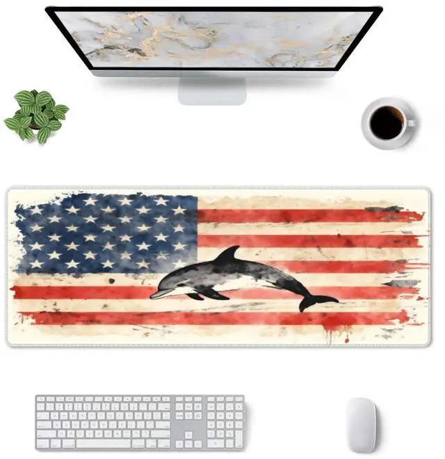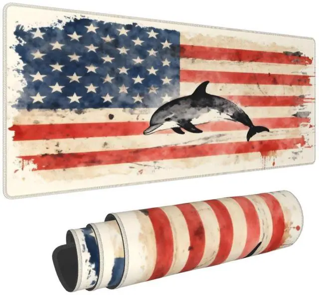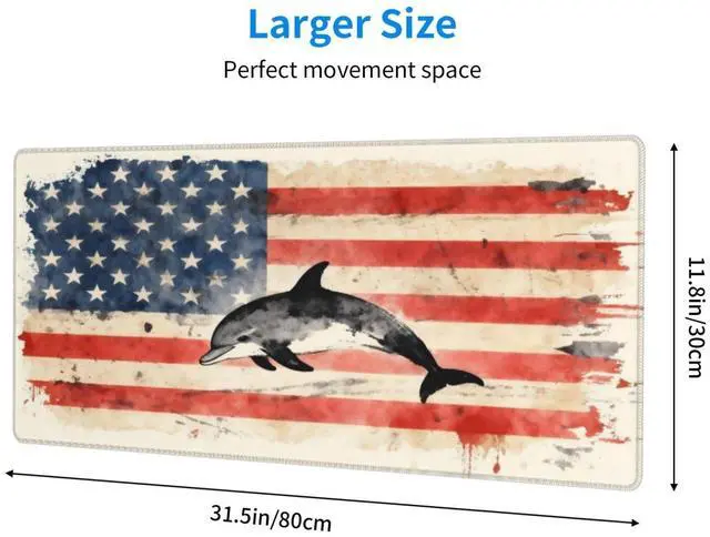 CANFLASHION American Flag Mouse Pad,Office Desk Mat 31.5"11.8",Large Gaming Mouse Pad with Dolphin Design, XL Extended Waterproof Desk Pad for Computer with Non-Slip Rubber Base300 * 800 * 3mm