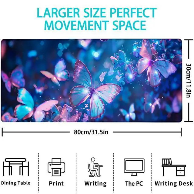 Mousepad is 31.5" x 11.8", suitable for most desktops, takes up no space and is easy to carry. Its soft material not only provides comfortable support for your wrist, it can also be rolled up and put into a bag for easy use anywhere. This mouse pad is not only powerful, but also aesthetically designed, suitable for a variety of office and gaming scenarios, whether it is a simple style of desk, or full of personalized gaming rooms, can be perfectly matched. It is the ideal choice for your productivity and game performance, and is also a practical gift for friends and relatives.