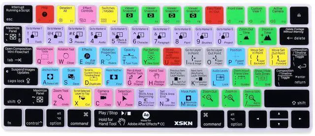 protective film-Material: premium silicone-After Effects functional shortcut print (English), QWERTY character layout-Upper side adopted rubber coating, gives you a comfortable soft touch feeling and ensure long lasting durability-Lower side is shiny surface, make the keyboard cover fit perfectly without any sticker/glue, will