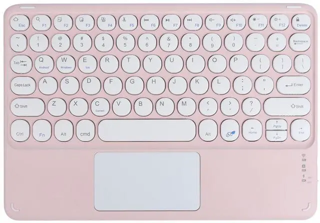 Wide Compatibility Universal 10 inch wireless keyboard designed for all kinds system Tablets, Computer and Smartphone (IOS, Android, Windows system) available in the market. [Press Press ''Fn+Q/W/E" to switch systems. ] ^^ Bluetooth Connection Bluetooth keyboard for iphone ipad adopts new-gen BT 5.1 technology, the working distance up to 33 ft. The keyboard is QWERTY layout, easy to use, has hot keys. you can enjoy seamless operation at home, office, or on-the-go use. ^^ Responsive TrackpadIt has the right and left mouse buttons built into the trackpad, offers tap to touch, finger scrolling, move up and down, makes you navigate and control device with ease using the sensitive and precise touchpad keyboard.