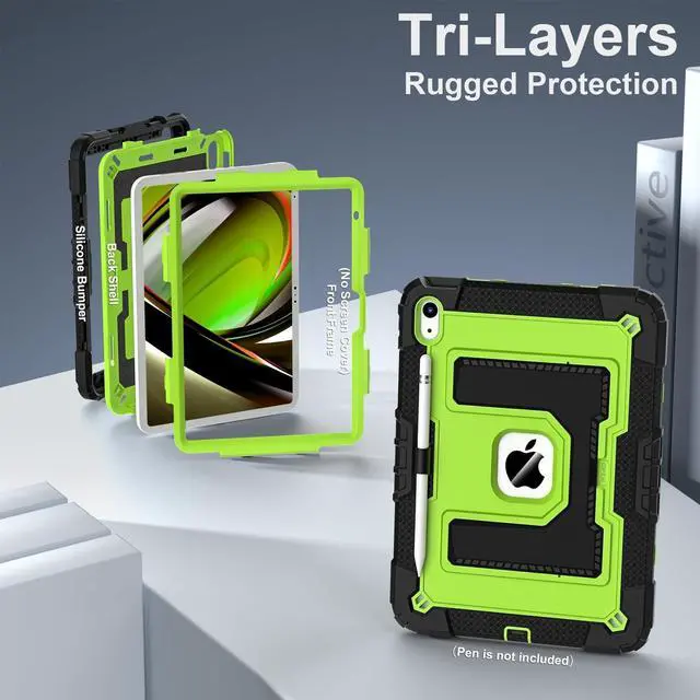 Model number: A3354/A3355/A3356 & A2696/A2757/A2777. Model number of your iPad is physically etched onto the back cover, Please find below the logo iPad ^^ Stable Larger StandThis upgraded iPad A16 case features a larger kickstand that provides stable support at 60 viewing and 45 typing angles. Enjoy your hands-free surfing, reading, or sketching at these comfortable angles ^^ Mil-Grade Drop ProtectionConstructed with a premium shock-absorbing silicone bumper and a structured hard PC frame, this 10th Gen iPad case offers your iPad triple layers of all-around protection against accidental drops or slips ^^ Portable Shoulder Strap Comes with a detachable and adjustable shoulder strap, easily carry around and get a quick grab on your iPad while youre on the go. Double security for kids dropping or scratching. Ideal for outdoor activities or school ^^ Precise Cutouts The case for iPad 11th Gen has precision custom-fit cutouts for full access to fingerprint unlock, volume control or charging port. Plus, the a16 iPad case has a compact holder to keep your stylus close at hand