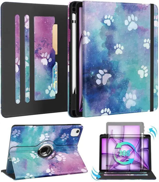 Multi-Functional Design: This case for iPad Air 13 inch 7th/6th generation, for iPad Pro 12.9 case 6th/5th generation features an elasticized cord strap, which ensures that your tablet closes securely, provides slip or drop protection. It also has two card slots designed to hold your bank cards business cards and other cards