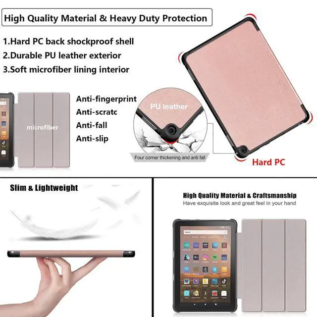 Auto Wake/Sleep: The smart cover automatically wakes up your Fire HD 8 (12th/10th Generation) when opened and puts it to sleep when closed, preserving battery life and ensuring hassle-free use. 3. Premium PU Leather and