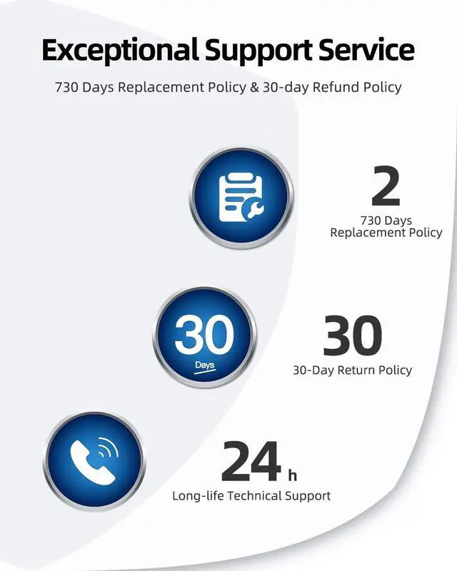 Unbeatable After-Sales Service: No-Questions-Asked replacement or full refund in 30 days, manufacture warranty valid for 2 years - our quality and service are of full confidence, so should your purchase.