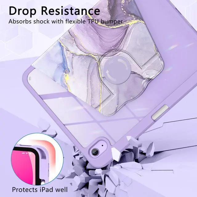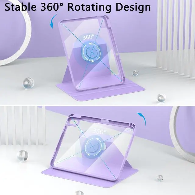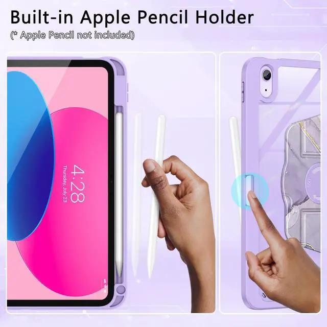 Number: A2696/ A2757/ A2777 / A3162) ^^ [Faux Leather & Transparent Clear Back] - Faux Leather with delicate touch, stain-resistant and washable. Crystal clear hard PC back with TPU frame prevents your new iPad a16 11th/10th Gen from scratching and bumping, offers full body protection ^^ [360 Degree Rotating] - This case for iPad a16 2025 can swivel both vertically and horizontally, non-slip lining material and grooves can set up multiple stand angles stably to reach your most comfortable viewing or typing ^^ [Built-in Pencil Holder] - No Pen included! Support Pencil Charging and provide pen holder nicely to secure your pencil, you can easily carry and use the apple pencil at any time.