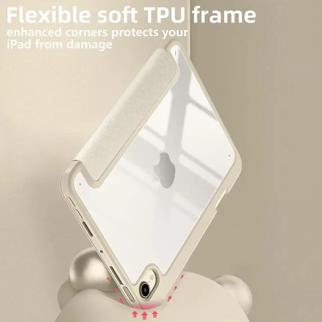 ^^ Full Protection: Combined durable PU exterior, soft TPU frame with crystal clear back(non-yellowing), and enhanced corners to protect your iPad mini A17 Pro from accidental damage.