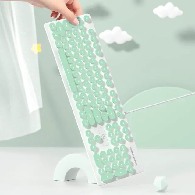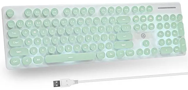 Each keystroke will make a soft sound, providing a very pleasant typing experience. ^^ [Full Size Keyboard] This 104 key full-size keyboard 26-key alphabet area with no key rollover. In the fierce game and rapid typing process, no matter how many other keys are pressed at the same time, each key will be recorded. You'll appreciate the convenience of a full-sized keyboard. ^^ [Retro punk Keyboard] This typewriter keyboard is a true "plug and play" device. giving you a comfortable typing feeling and a stable touch, which is Sturdy. The unique round keycap makes this keyboard different from the traditional keyboard and is a great Christmas gift.