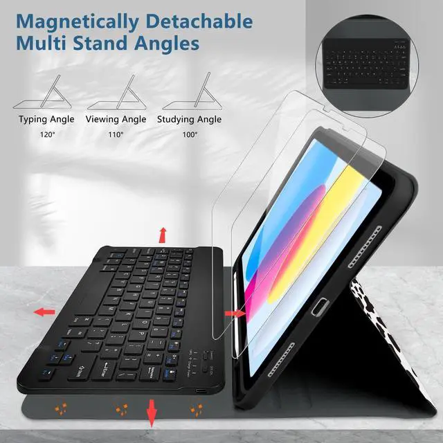 Generation (Model Number: A2696/A2757/A2777). iPad 11th (A16) generation 11-inch 2025 (ModelA3354, A3355, A3356), Please check the model number on the back of your iPad before purchasing. ^^ [Pencil Holder and Multi-angle Adjustable Support] This 10th generation iPad tablet case has a built-in Pencil holder that makes it easy to carry Pencil and take it out. The iPad case has three grooves that can be used at three angles, and is made of non-slip material that supports the iPad to stand up. ^^ [Rechargeable Keyboard] The iPad Bluetooth keyboard has a built-in battery with high stability, so you don't need to replace the battery. You can charge the keyboard using the charging cable that comes with the keyboard. The keyboard has a Bluetooth acceptance range of 10 meters. If you don't need to use the keyboard, you can remove it and turn it into a regular iPad case, which makes for a handy experience. ^^ [Automatic Sleep/Wake] This iPad case will automatically put your iPad to sleep when you close the front cover of the case. Because an iron keyboard may prevent magnets from attracting to each other, remove the keyboard for optimal sleep/wake up.