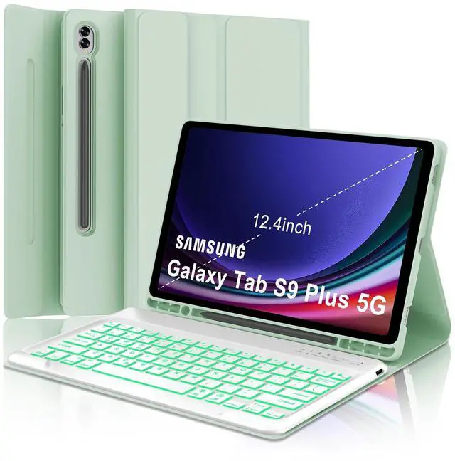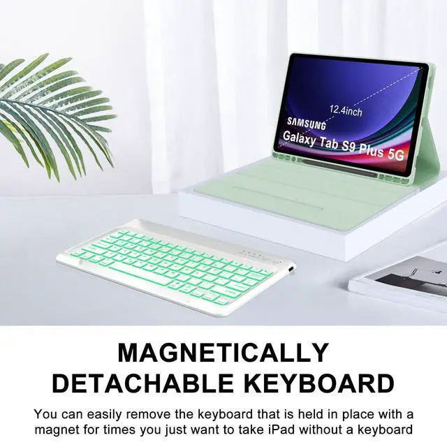 Keyboard Case for Samsung Galaxy Tab S10 Plus, Galaxy S9+ Plus Keyboard 12.4 inch, Magic Keyboard for Samsung S9 FE + Case, 7 Colors Backlit, Magnetic Detachable, Auto Sleep/Wake Up Smart Case (Green)