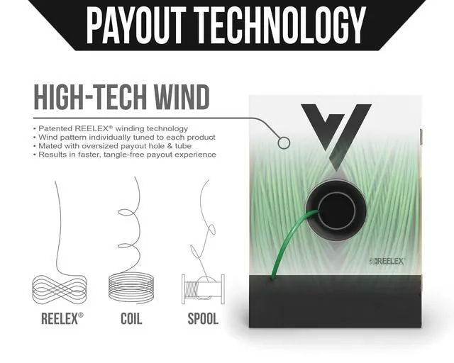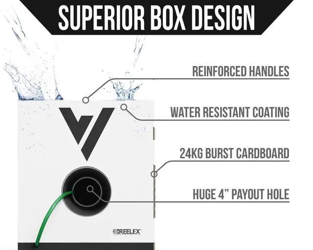 • TIME SAVING FEATURES. Patented winding technology & massive payout hole eliminate kinks and tangles. Reinforced handles, super-durable cardboard, & water resistant coating keep the box intact. Jacket features ripcord, UL information, re-order part number, an