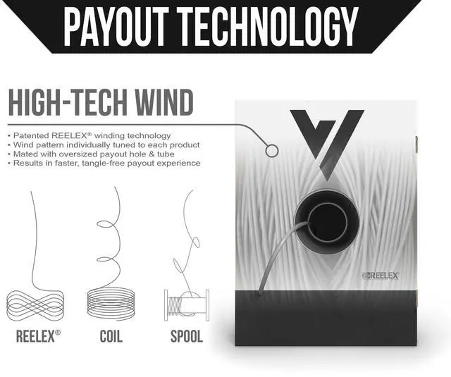 • TIME SAVING FEATURES. Patented winding technology & massive payout hole eliminate kinks and tangles. Reinforced handles, super-durable cardboard, & water resistant coating keep the box intact. Jacket features ripcord, UL information, re-order part number, an