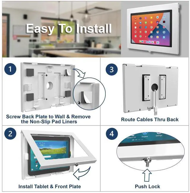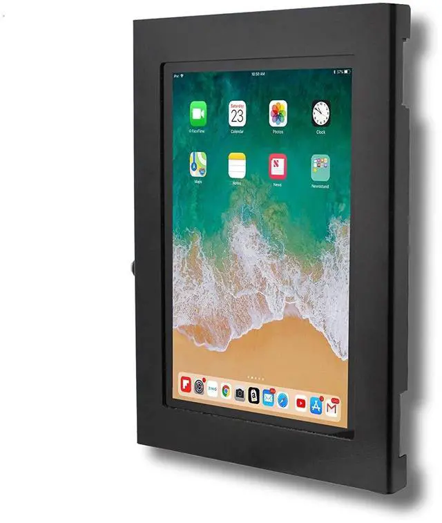 Material: Aluminum, Dimension: 200mm (Height) x 30mm (Depth) x 290mm (Width), Weight: 1.5 lb ^^ Used as Time Clock, POS, Kiosk, Store Display, Trade Show display ^^ Total Screen Access For Full Touch Function, Install In Seconds! One Push Button Lock, Anti-theft security design ^^ Wall Mount Ready! Supports VESA mounting kit with 75mm/100mm standard for both Landscape and Portrait Display Modes