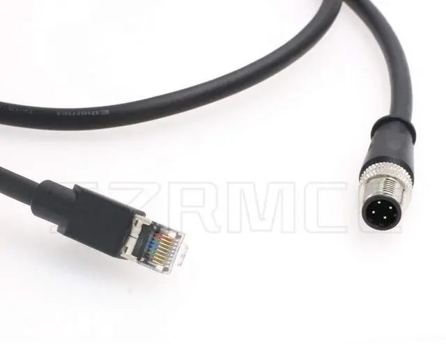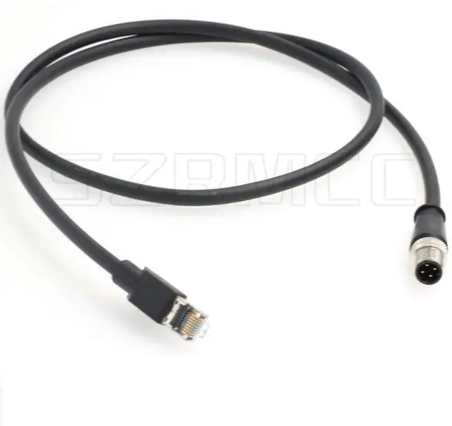 The industrial ethernet cable is a single foil twisted pair cat5e cable with a black PUR jacket rated at 24 AWG shielded wire. Both the M12 and RJ45 connectors have a molded black TPU strain Relief. ^^ Waterproof IP68 connector Fit for Industrial Machinery, Ethernet, network applications, Matrix Vision, Triton camera models, and more GigE Vision camera.