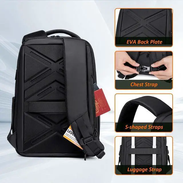 Durable Materials: Made from water resistant 1800D Oxford fabric, with a gray-orange polyester lining and metal zippers (not water resistant), this office backpack is built to handle daily use and various weather conditions ^^