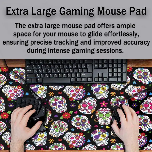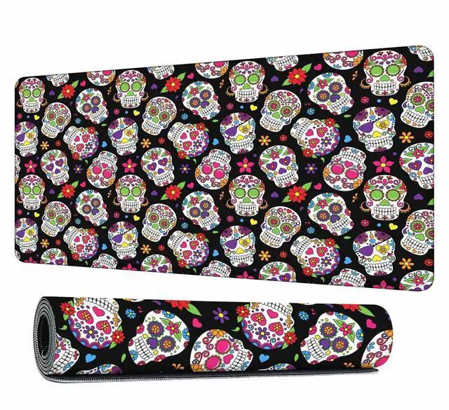 Y YIHANGBEST Sugar Skull Desk Mat Large Mouse Pad Day of The Dead Zombie Pirate Graveyard Full Extended Gaming Computer Keyboard Mousepad for Home,Office 35.4"X15.7"