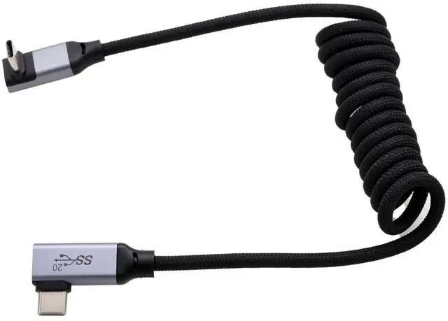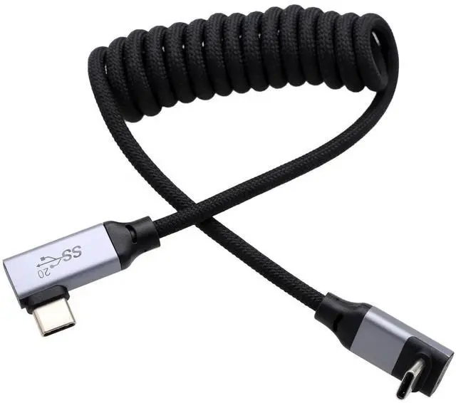 HangTon USB Type C USB-C 20Gbps PD100W 4K60 Data Power Video Cable for Samsung SSD BMPCC ZCAM R5 R6 A7C FX3 Camera iPhone 15 Phone Laptop Monitor, Up Right Angled Braided Coiled 30cm