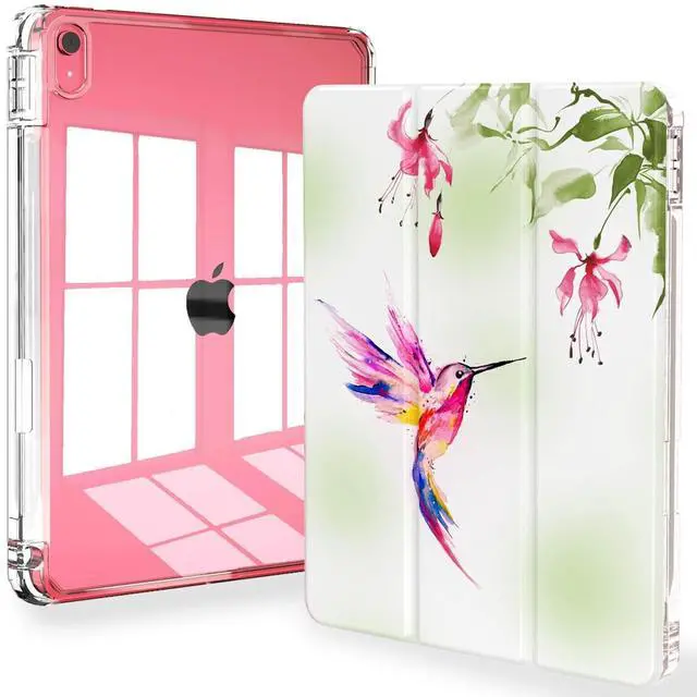 Feams Case for iPad (A16) 11th Generation 11 Inch 2025, iPad 10th Generation 10.9 Inch 2022, Slim Tri-Fold Stand Clear Back Cover with Pencil Holder & Auto Sleep, Hummingbird