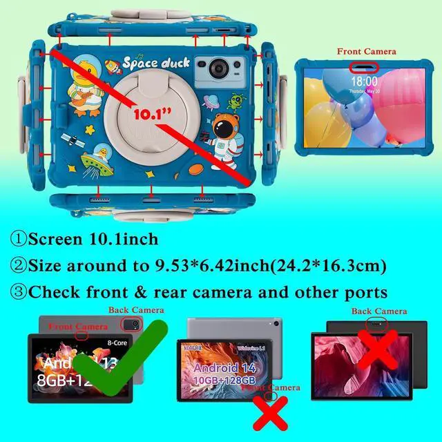 Compability: Case fit for Callsky 10.1 '', Onn 10.1 '', Byybuo 10.1 '' and ect. But it is NOT for all 10.1 inch tablet, please check the size and port as pic attached ^^