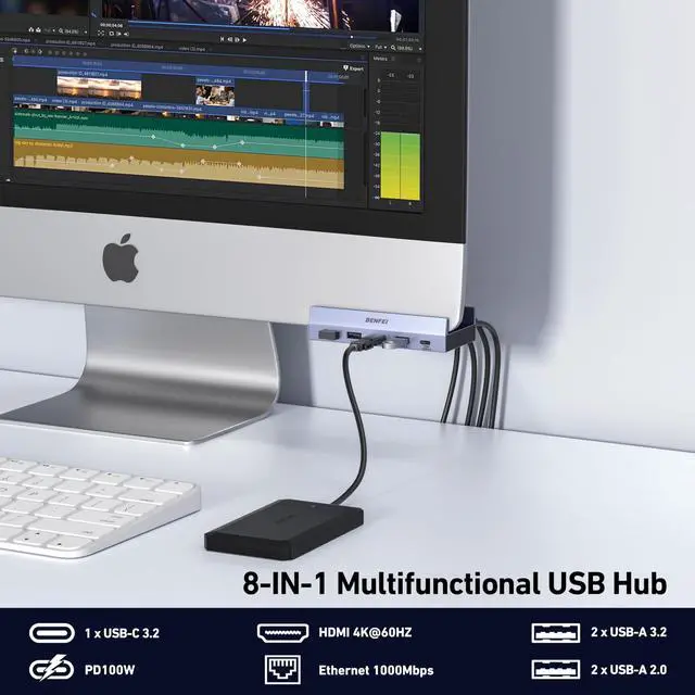 New Clampable Hub DesignBENFEI USB C Hub designed with adjustable screw allow you to mount monitor screen edge or desk edge thickness from 0.19 to 1.41 inches (5-36mm), without occupying much space and keeping your desk top neat. The fix Hub is easy installation and sturdy and rubber cover on the screw can protect monitor's finish. ^^ 4K@60HZ Vivid DisplayMirror or extend your laptop, tablet or phone screen to external HDMI display up to 4K@60Hz, keeping every incredible moment detailed and ultra vivid. Please note that the C port of the Host device needs to support video output.