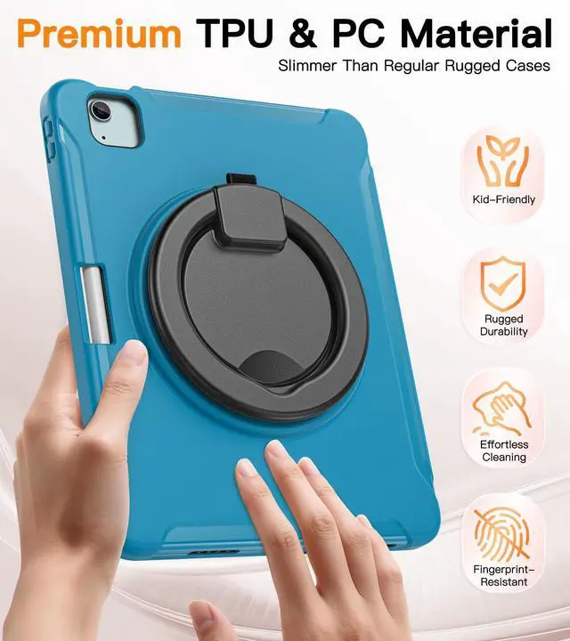 Premium Kid-Friendly Material: This rugged shockproof iPad case is made of kid-friendly premium PC (polycarbonate) and shock-absorbing TPU, safe for adults and kids alike. The blend of high-hardness PC and flexible TPU makes the case more durable and easy to clean, offering enhanced protection while delivering a superior user experience ^^ Pro