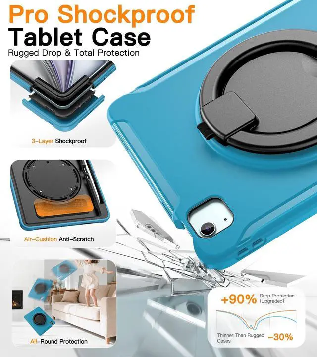Shockproof Protection: This heavy-duty multi-piece (3-in-1) iPad case features a 4-layer protective structure for accidental drops: PC front/back plates, an air-cushion scratch-resistant layer, and a TPU outer shell. Raised bezels around the camera and screen protect vulnerable areas, minimizing device damage from everyday falls ( 1.2 m- 1.5 m) with reliable daily defense ^^