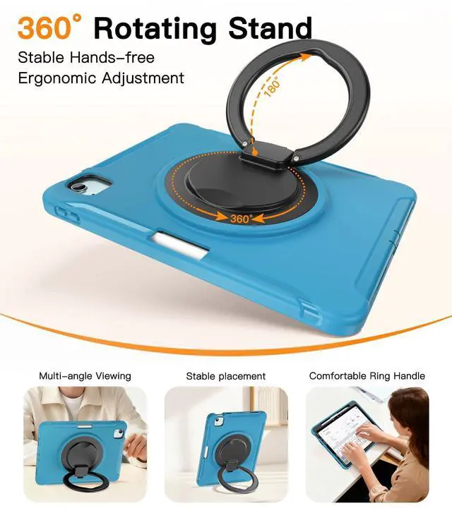 Multi-Functional Design: This iPad case has a super stable built-in standno tipping or slipping when typing, drawing, or working. 360 rotatable for horizontal use (video gaming) or vertical (short videos calls), it folds 180 for easy carrying, hanging, and space-saving storage. With an Apple Pencil holder, precise cutouts, and anti-dust ports, this thoughtful multi-functional case delivers great practical value ^^ 9