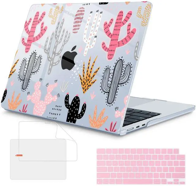Mektron for 2025 MacBook Air 15 inch M4 Case A3241/ 2024 M3 A3114/ 2023 A2941 M2 Hard Printed Case with 15.3 Liquid Retina Display Touch ID, Plastic Hard Cover & Keyboard Skin- Colorful Cacti-Blue