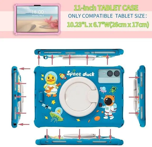 COMPATIBILITY: This 11-inch Android tablet case fits ApoloSign, DOOGEE, PRITOM, ECOPAD, AOCWEI, and TECLAST or more 11-inch tablets, please check the second hole diagram and confirm the tablet's length and width dimensions, camera and speaker location before purchasing. ^^ Case for