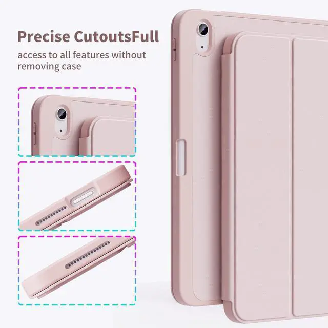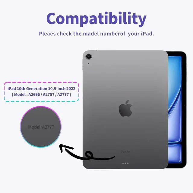 This tablet case is specifically designed for the iPad 10th Generation 10.9 inch 2022 release, compatible with models A2696 / A2757 / A2777. It features a built-in pencil holder that securely stores your Apple Pencil or stylus for quick access, making it ideal for students, professionals, and daily use. The smart magnetic cover supports auto wake and sleep functions, improving convenience while preserving battery life. The front flap folds into a stable kickstand, offering multiple viewing angles for reading, typing, or watching videos. Made of durable PU leather and soft inner lining, the slim case provides full-body protection against scratches, drops, and dustwithout adding bulk.