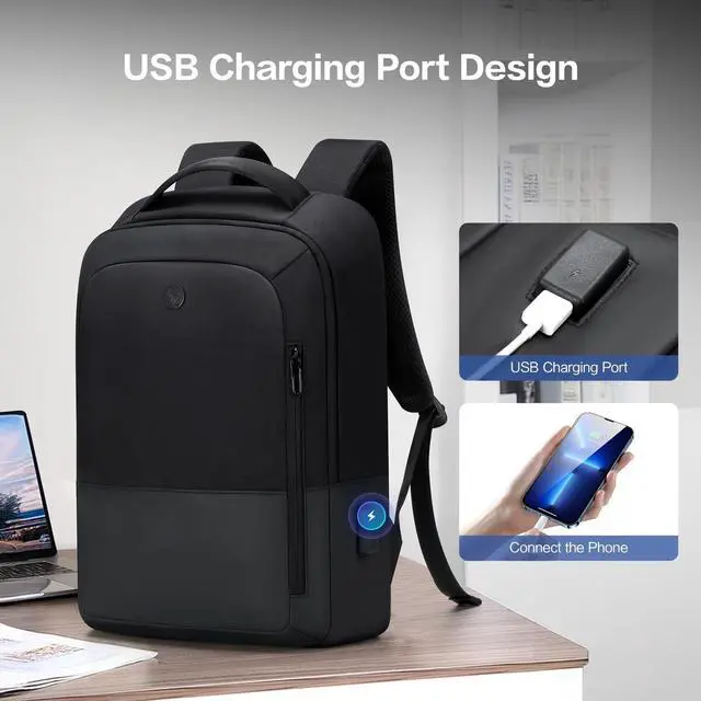 USB CHARGING DESIGN: The business men's backpack offers a convenient way to charge your mobile phone, with an external USB socket that allows you to place the charger in the internal pocket and connect it to your mobile phone via the power cord, making it easy to charge your mobile phone when you are walking (power cord and power bank are not included) ^^